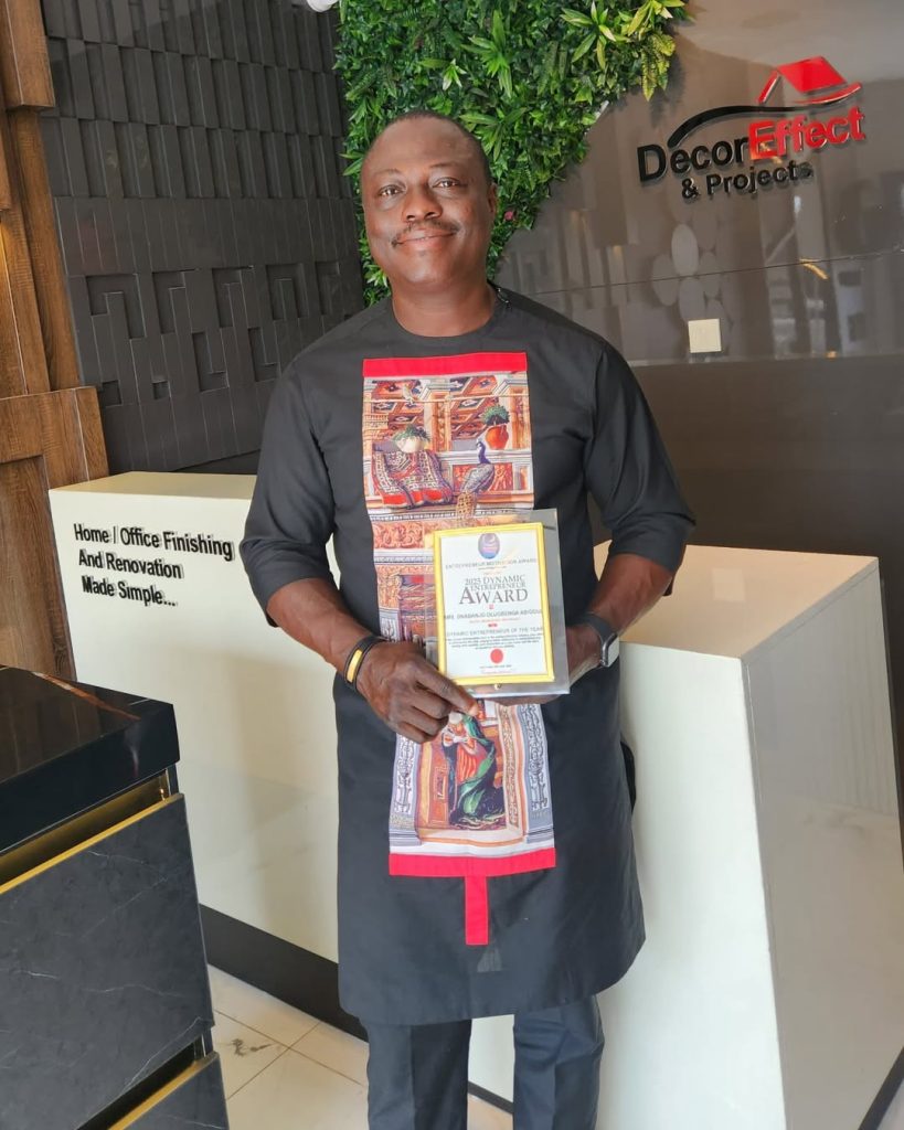 The CEO and Founder of DecorEffect and Projects Ltd, Olugbenga Onabanjo, has been honored as one of the 2025 Dynamic Entrepreneurs by the Entrepreneur Empowerment Awards (EMA Awards)—a prestigious recognition celebrating entrepreneurial excellence, innovation, and impact across Nigeria.